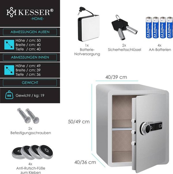 - Elektr. Tresor mit Fingerabdruck | 50x35x31cm | Inkl. Batteriebox | Elektronischer Safe 3x Doppelbolzenverriegelung | Boden Wandtresor | Möbeltresor | beleuchtung | Panzerschrank Zahlenschloss